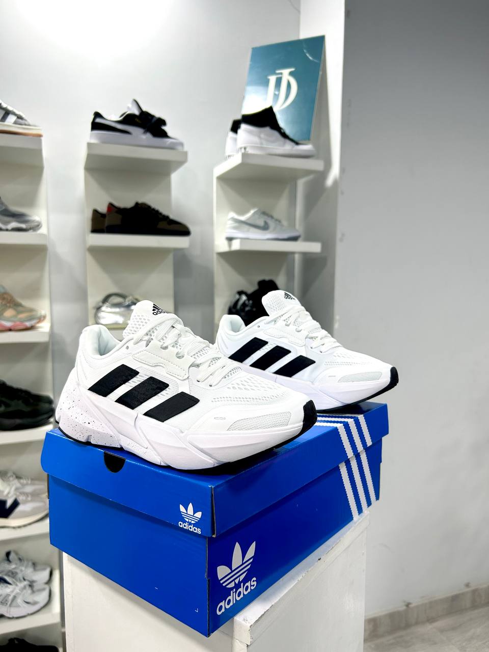 يوفر هذا الحذاء الرياضي الأسود الأنيق توسيدًا وثباتًا فائقين للعدائين لمسافات طويلة. يتميز بنعل أوسط مزدوج الكثافة ودعامة للكعب، وهو مصمم خصيصًا للتحمل والارتداء اليومي.