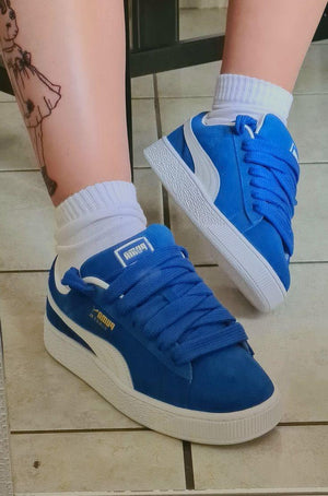 حذاء رياضي يُعيد ابتكار تصميم بوما الأيقوني من جلد سويد ، بنعل أكثر سمكًا، وأشكال مُبالغ فيها، ونسب مُحدثة تُناسب أزياء الشارع العصرية. يُحتفى بجذوره التراثية وتفسيره العصري، حيث يجمع حذاء سويد إكس إل بين الأناقة الكلاسيكية والراحة اليومية في تصميم واحد مميز.